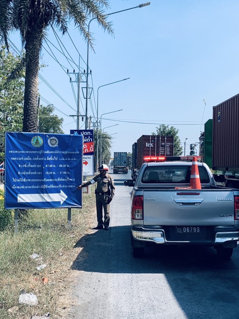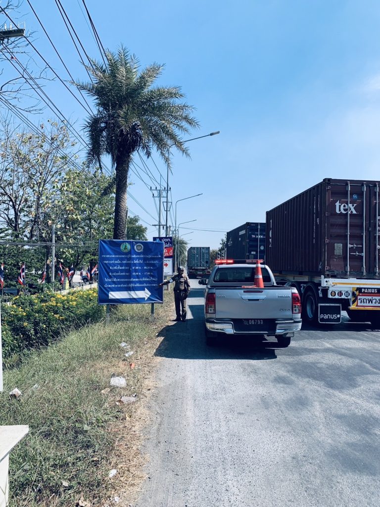 พ.ต.ท.ประสาร ธนะทรัพย์ทอง สวป.สภ.หนองแค พร้อมเจ้าหน้าที่จราจร สภ.หนองแค ประชาสัมพันธ์ รถบรรทุกหนัก ให้เลี่ยงใช้ถนนในช่วงเวลาดังกล่าว