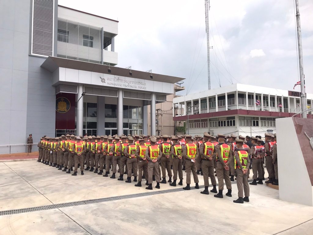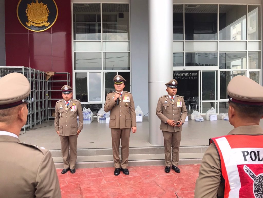 พ.ต.อ.สุรเชษฐ์ แสนวงศ์สิริ ผกก.สภ.หนองแค พร้อมข้าราชการตำรวจ รวมแถวเตรียมพร้อม ภารกิจ ถปภ. เส้นทางสำรอง ณ สภ.หนองแค