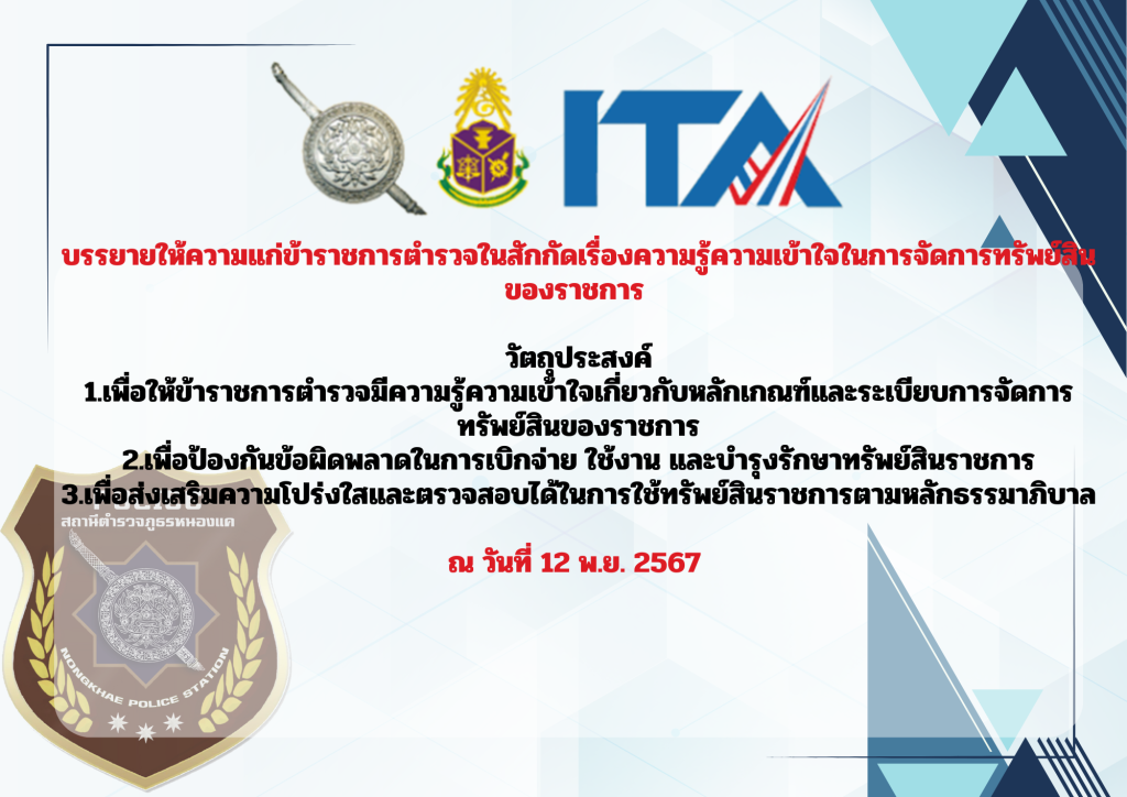 1.เพื่อให้ข้าราชการตำรวจมีความรู้ความเข้าใจเกี่ยวกับหลักเกณฑ์และระเบียบการจัดการทรัพย์สินของราชการ