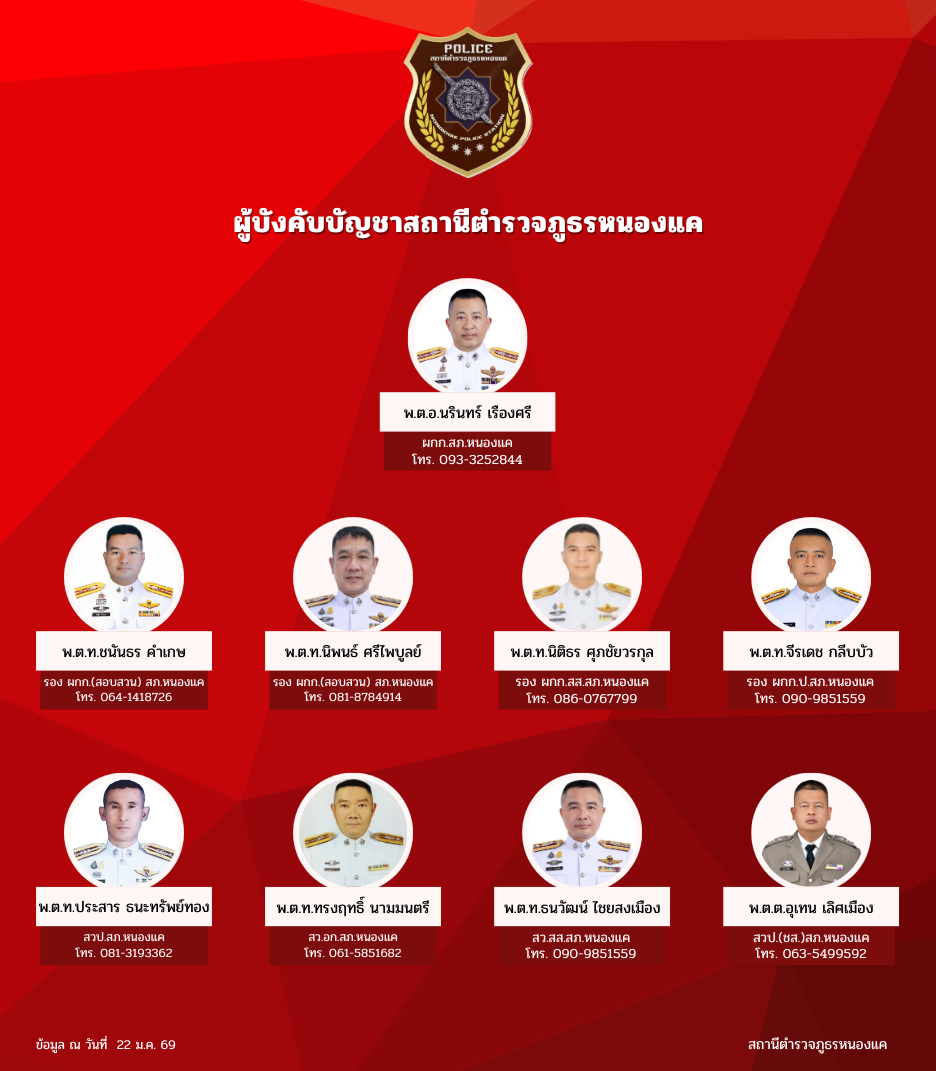 O2 ข้อมูลผู้บริหารอัตรากำลังและพื้นที่รับผิดชอบ ข้อมูลผู้บริหารอัตรากำลัง และพื้นที่รับผิดชอบ ข้อมูล พื้นฐาน สภ.หนองแค FacebookFacebookXXLINELine
