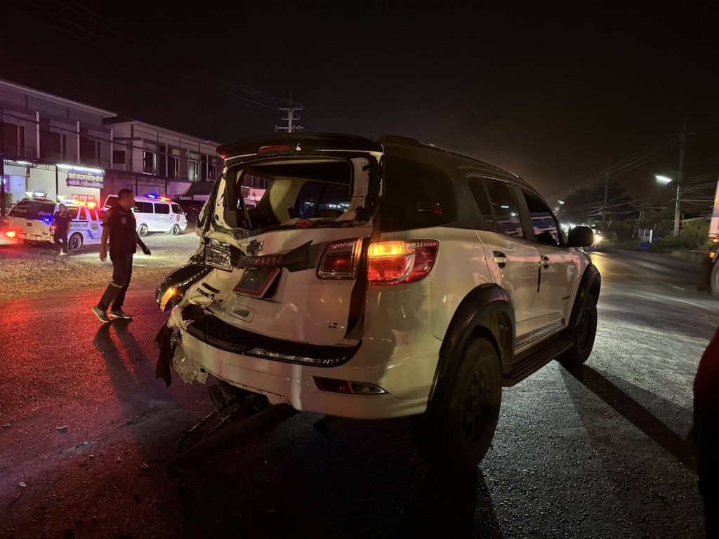 ว.4 ว.40 ถนนเส้นร่องแซง รถจักรยานยนต์ชนท้ายรถยนต์ มีผู้บาดเจ็บ 3 ราย ส่งตัวรักษา รพ.หนองแค